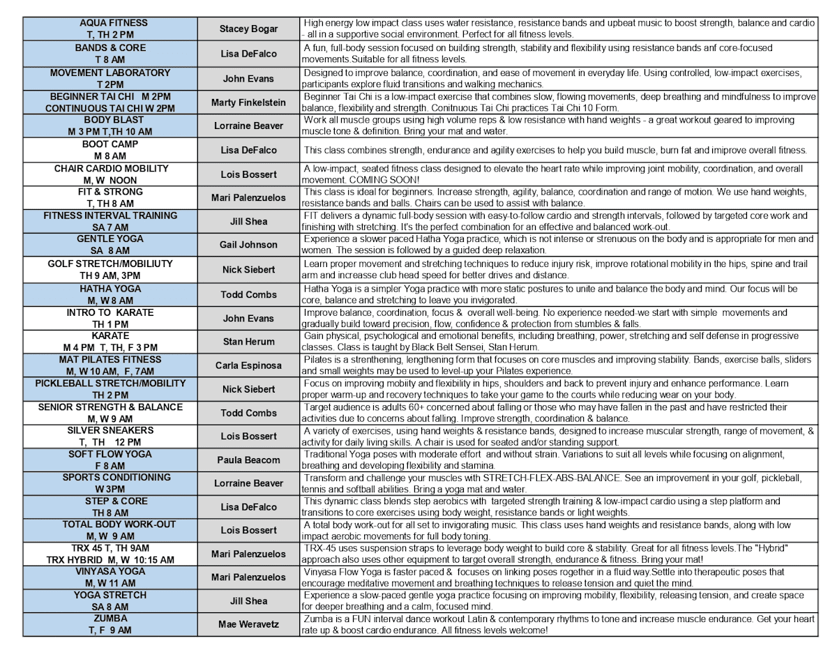 Print 2026 Fitness Class Descriptions
