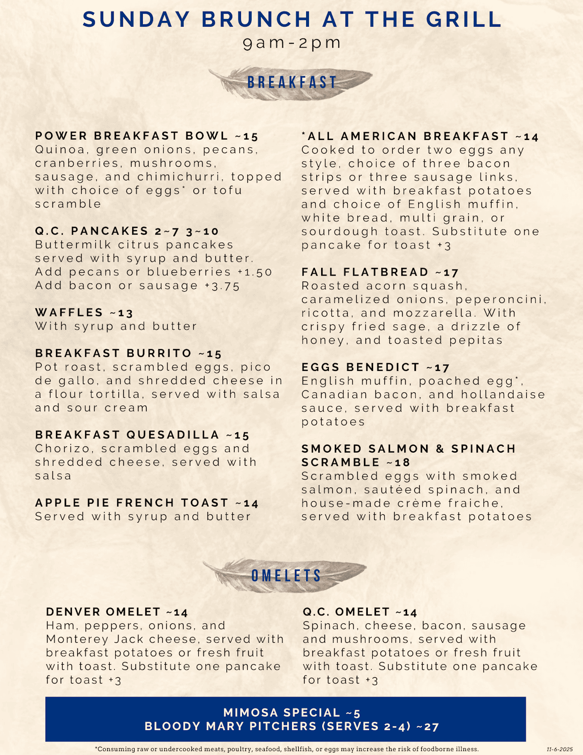 Sunday Brunch Menu - November 2025