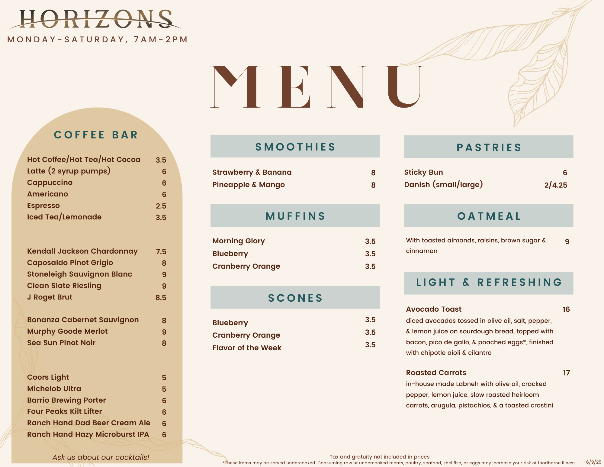 Horizons Menu